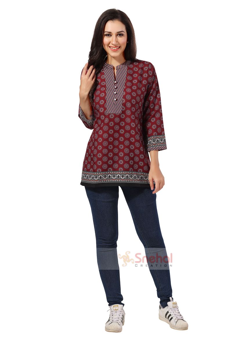 Maroon Flex Cotton Designer Tunic Top