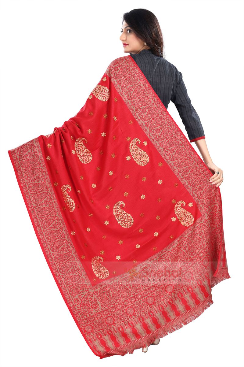 Mesmerizing Embroidery On Trendy And Cozy Indian Red Shawl For Women