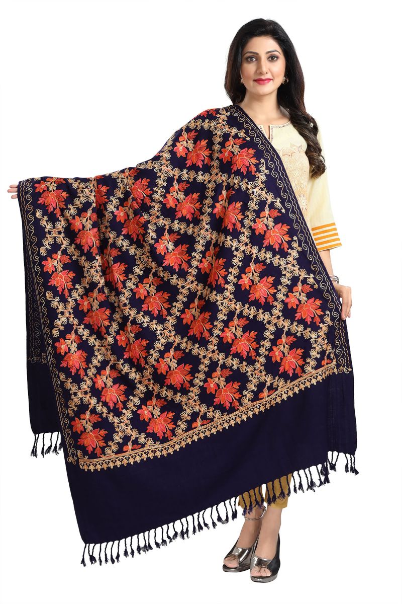 Novel Navy Blue Indian Shawl With Exquisite Embroidery For Women