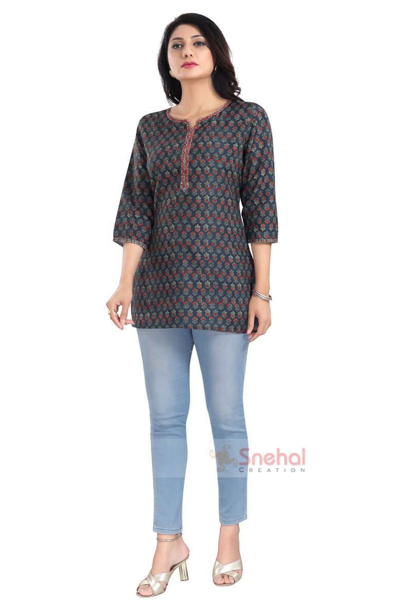 Novel Navy Blue Rayon Short Kurti Tunic Top