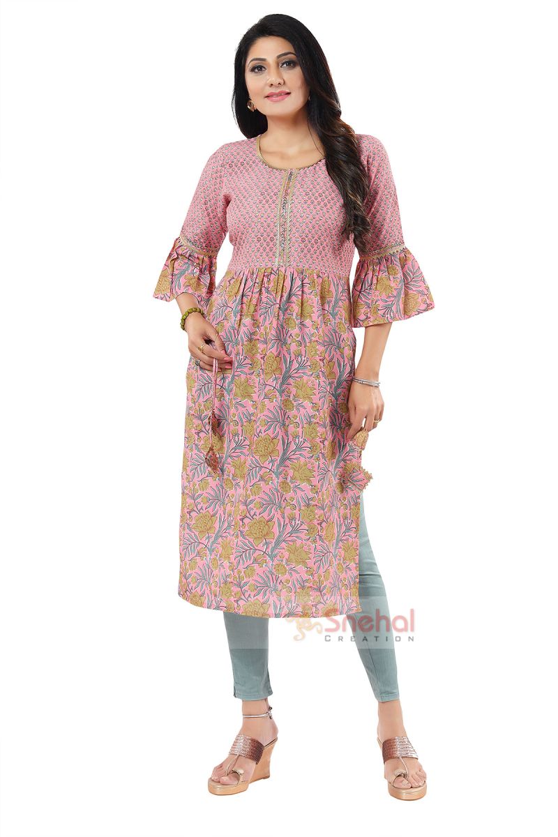 PLEASING PINK RAYON NAIRA CUT DESIGNER KURTI