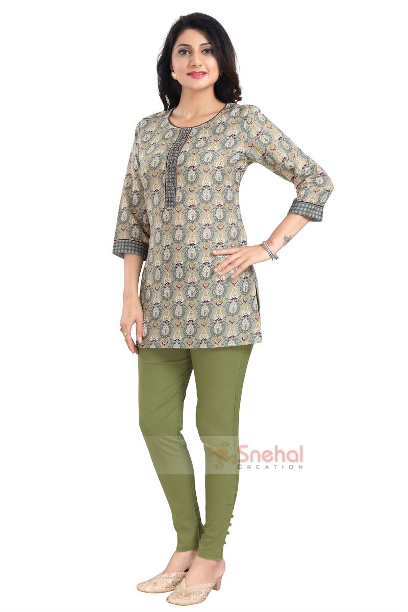 PRETTY PASTLE VARIYALI GREEN RAYON SHORT KURTI TUNIC TOP