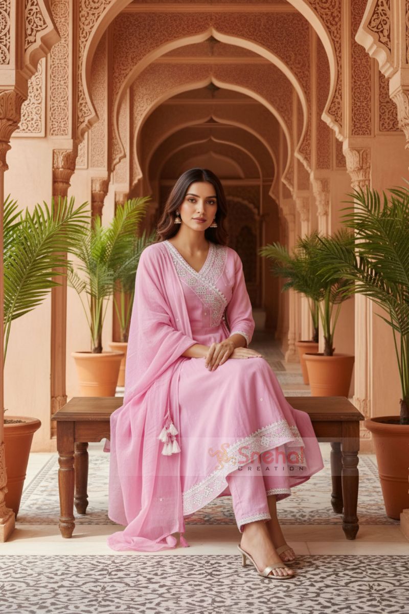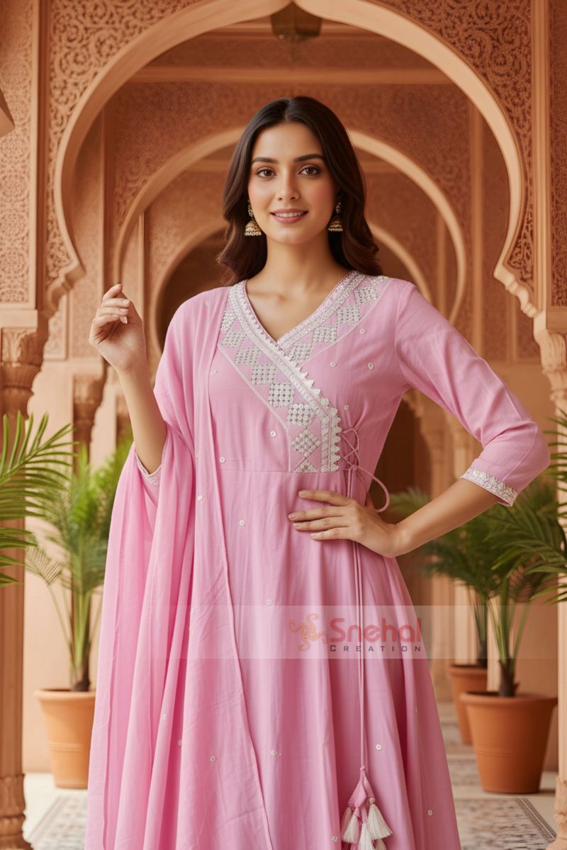 Jaipuri Print Cotton 3-Piece Suit Set Premium Cotton Fabric Matching Printed Dupatta Matching Comfort-Fit Pant 3-Piece Set: Flared Kurta, Pant and Dupatta