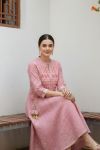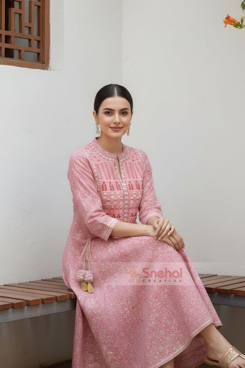 Pinky Pink Jaipuri Cotton Anarkali With Embroidery Yoke And Tussles