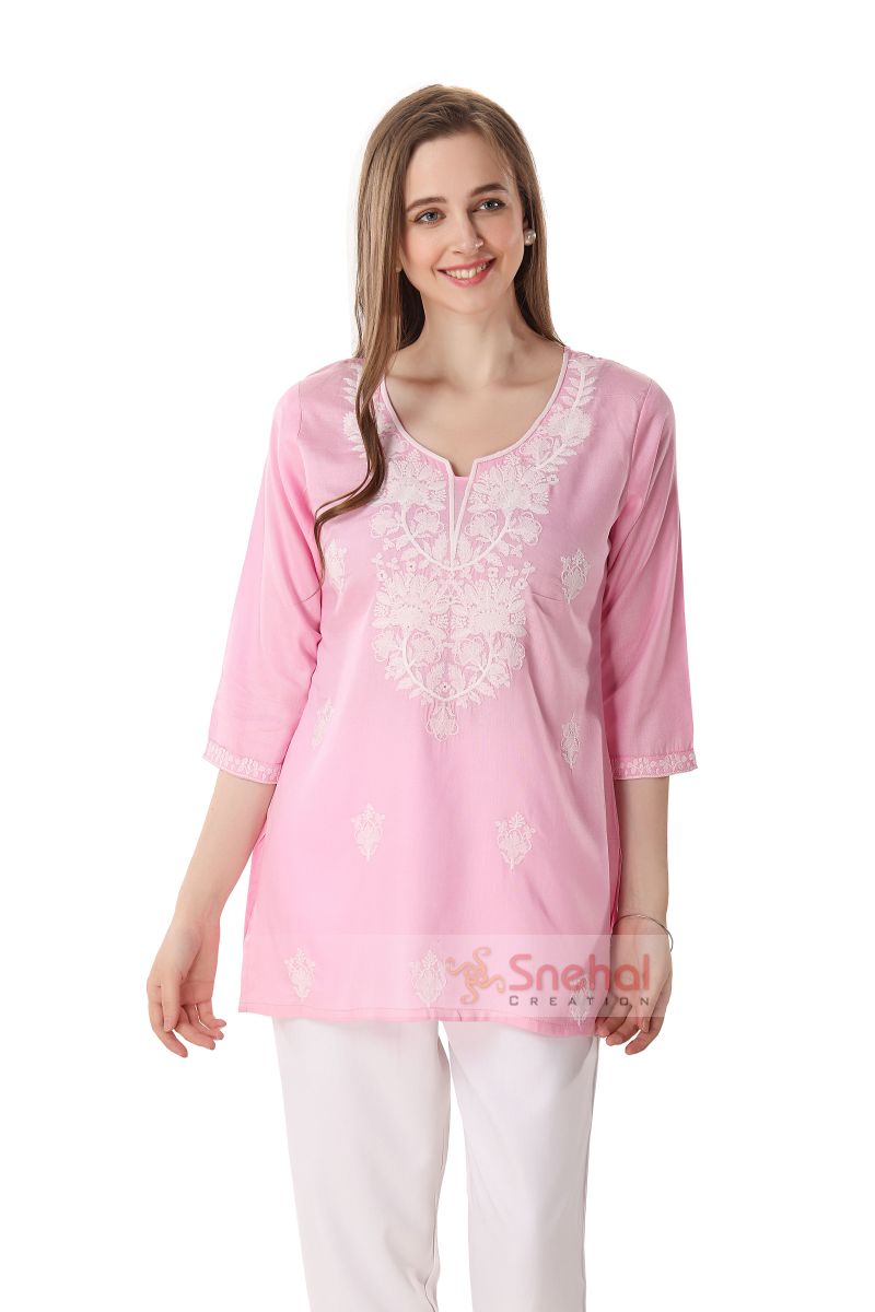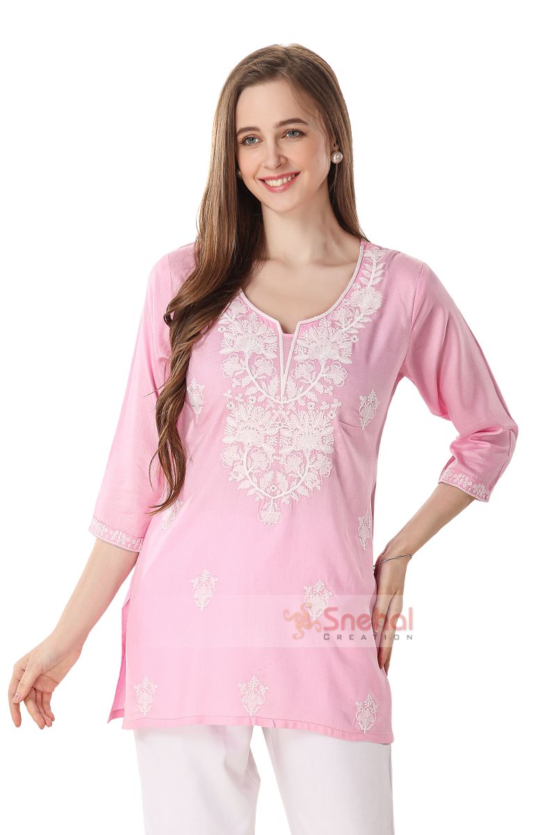 Pinky Pink Rayon Chikankari Kurti Tunic