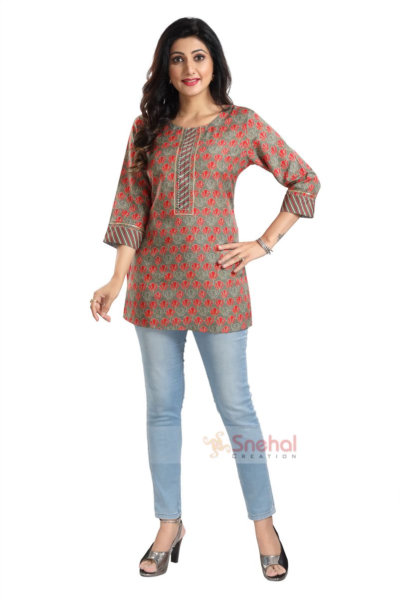 Novel Navy Blue Rayon Short Kurti Tunic Top