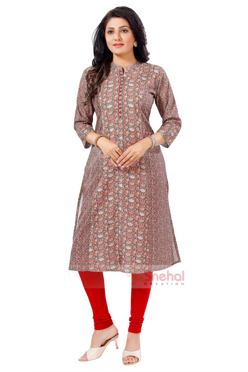 Gorgeous Gray Cotton Print A Line Kurta For Women