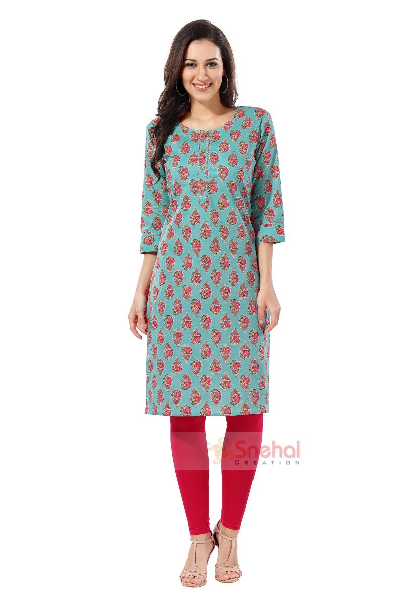 Rama Green Cotton Printed Long Tunic for Work Wear