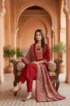 The highlight of this suit is the beautifully detailed front neckline, adorned with subtle zari embroidery, enhancing the overall look with a refined festive touch. Paired with a coordinated printed pant and a matching dupatta finished with a contrasting border, this ensemble is perfect for festive occasions, office wear, and graceful day outings.