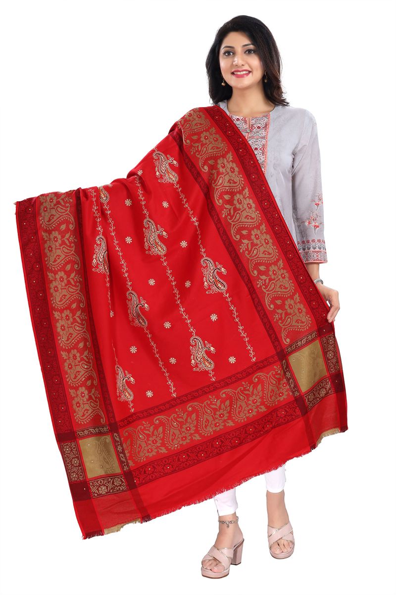 Romantic Red Indian Shawl With Exquisite Embroidery For Women