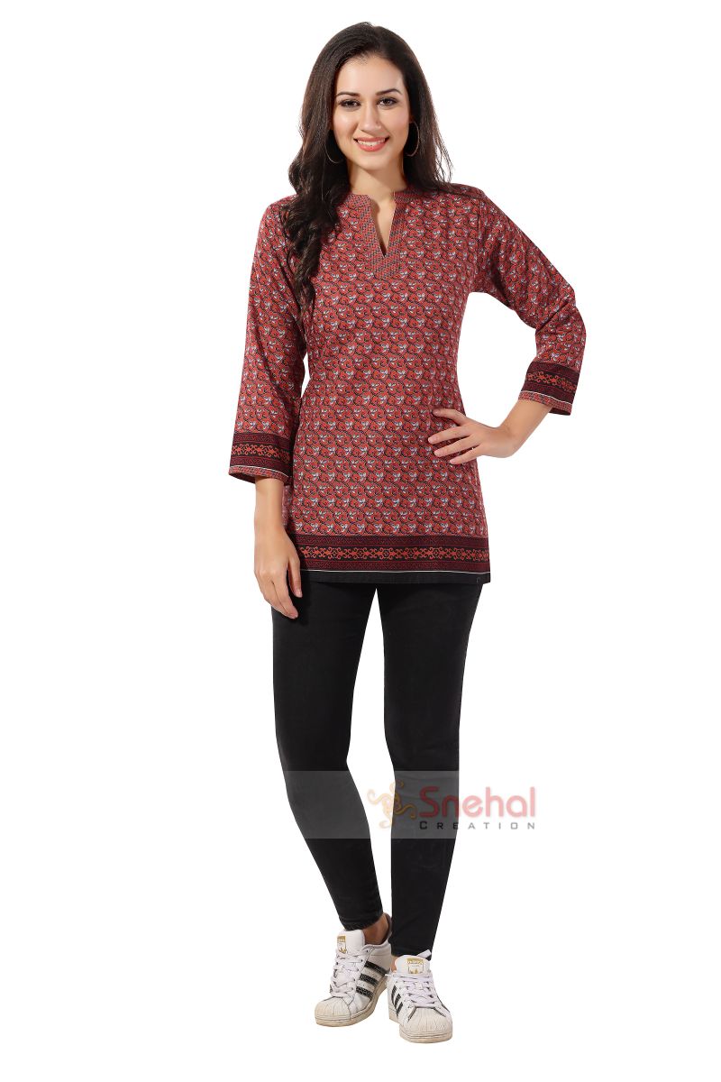 Rust Color Flex Cotton Designer Tunic Top