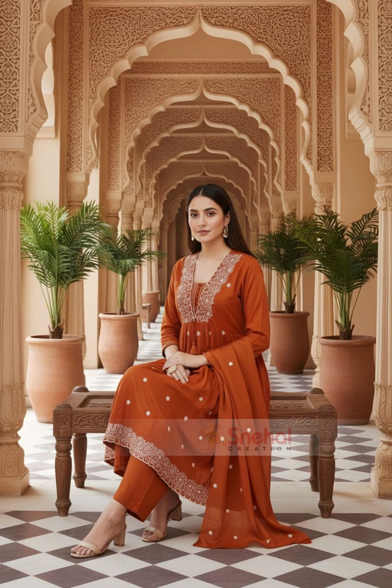 - 3-Piece Set: Flared Kurta, Pant and Dupatta