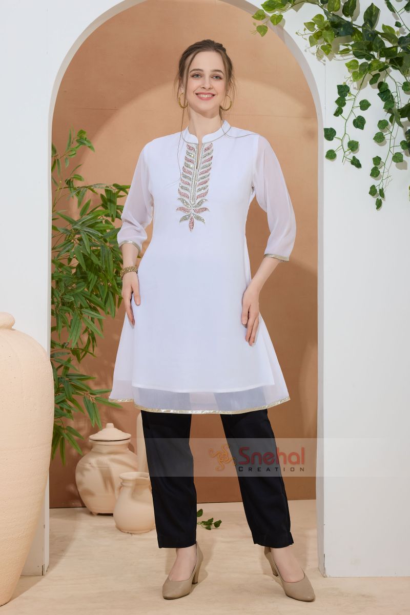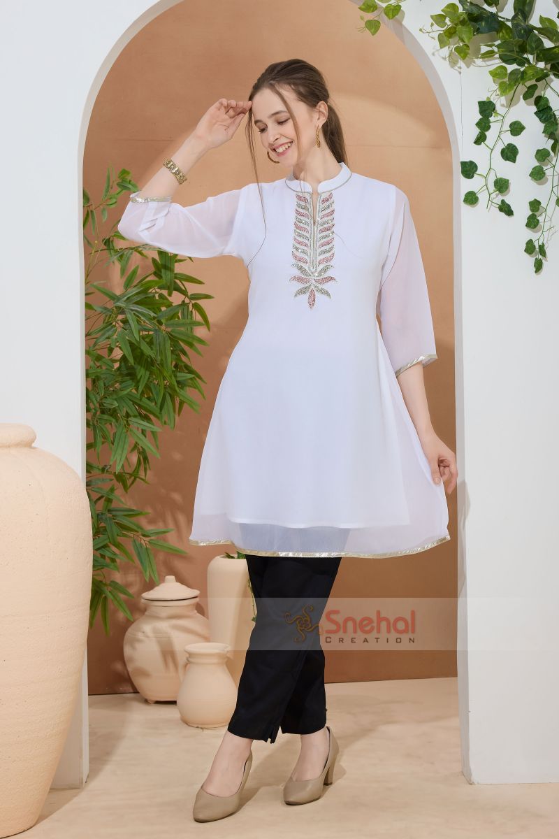 Shine In White Georgette Beaded Women Tunic Dress
