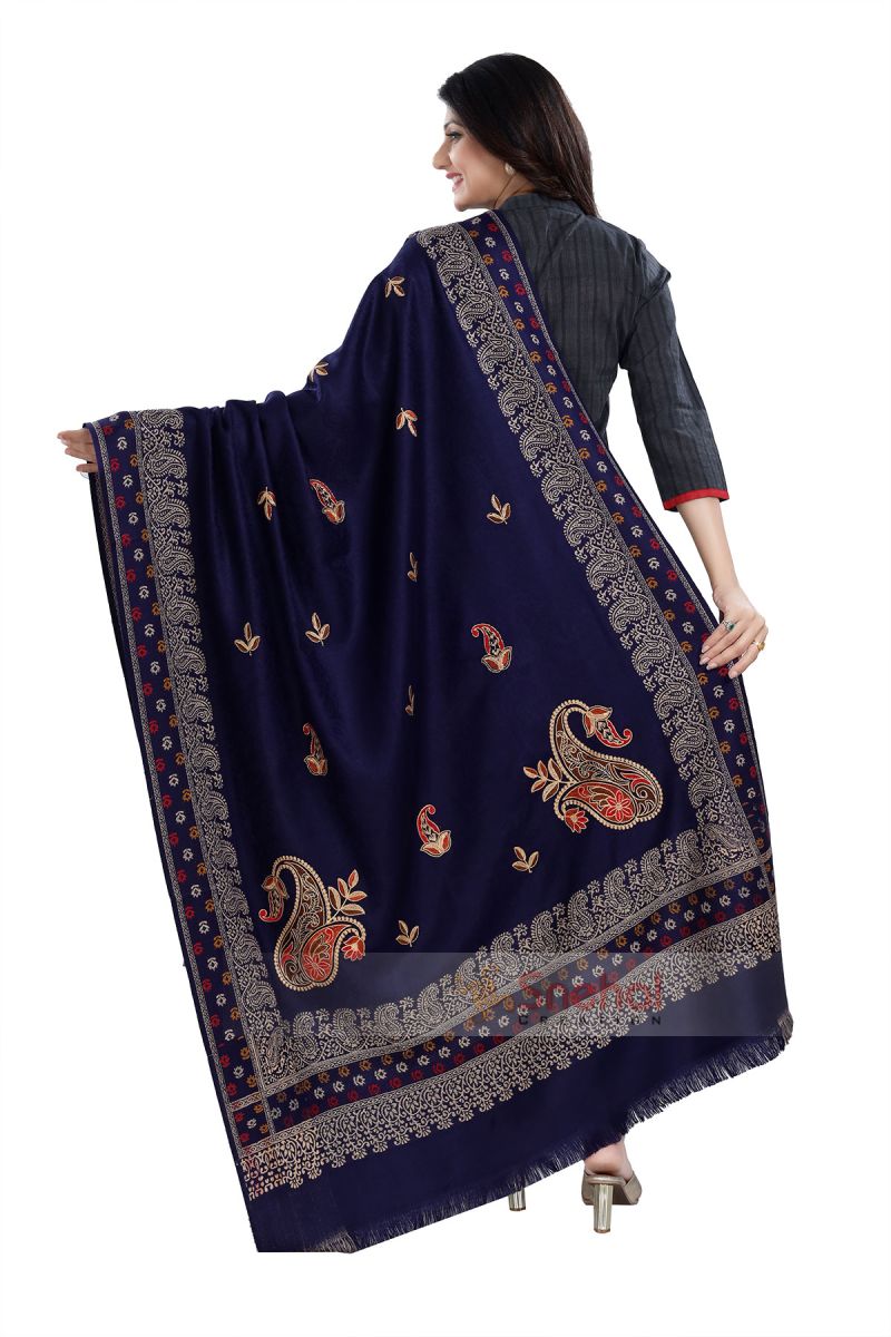 Splendid Embroidery On Trendy And Cozy Indian Navy Blue Shawl For Women