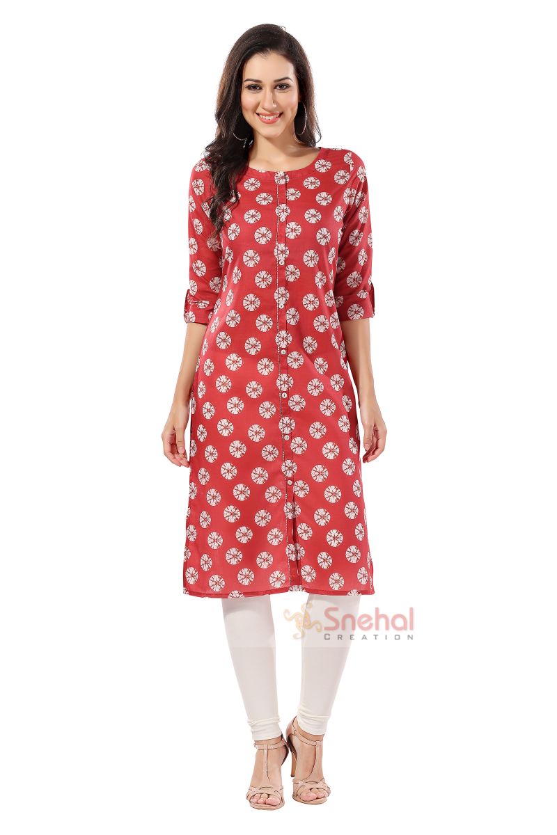 Discover the perfect blend of comfort and style with our Rust Cotton Printed Long Tunic for Work Wear. Crafted with care, this tunic features a unique print, making it an ideal choice for your professional wardrobe. Shop now at Snehal Creation and elevate your workwear fashion effortlessly.