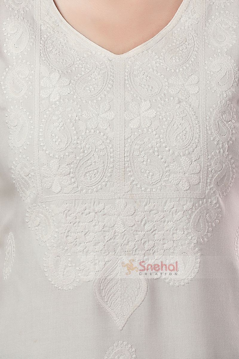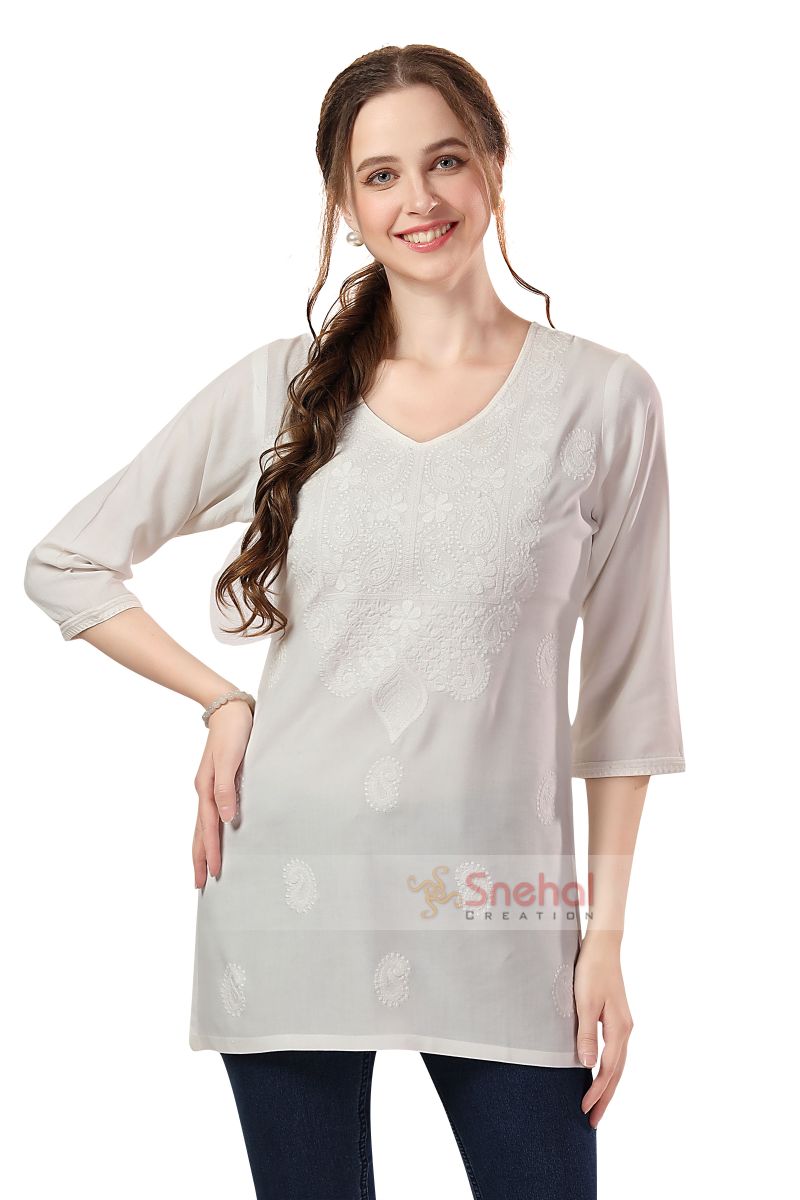 Summer Ready Rayon Chikankari Kurti Tunic In White