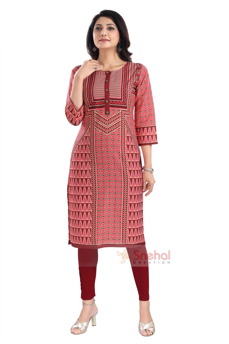Tempting Tomato Designer Digital Print Cotton Slub Fabric Long Kurti Tunic