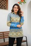 Turquoise Womens Modal Azrakh Print Shirt Style Kurti Top
