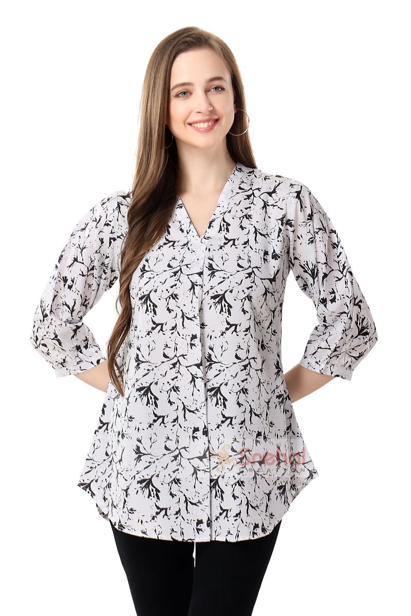 Unique Faux Crepe Tunic with Stylish Black and White Patterns