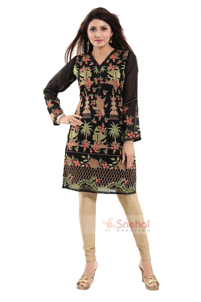 Unique Style Black Fine Georgette Short Tunic With Exotic Embroidery