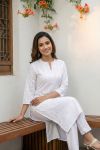 White Pure Cotton Chikankari Long Kurti for Women