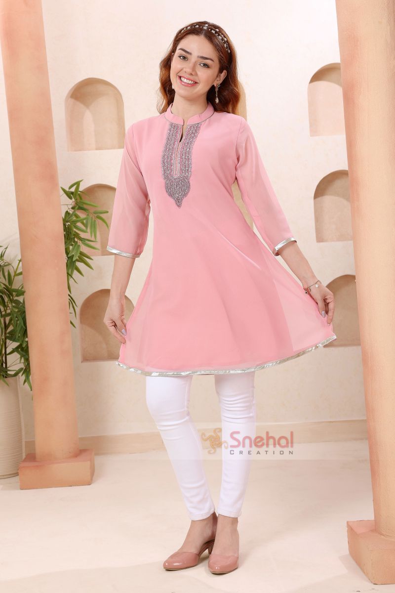 Wink In Pink Georgette Beaded Women Tunic Dress