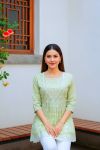 Women Light Green Chikankari Embroidered Peplum Short Kurti