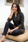 Designed with 3 4 sleeves and cuff pattern detailing, this kurti ensures both comfort and style. Its short length makes it perfect to pair with jeans, trousers, or ethnic bottoms, making it ideal for casual outings, office wear, or daily wear.