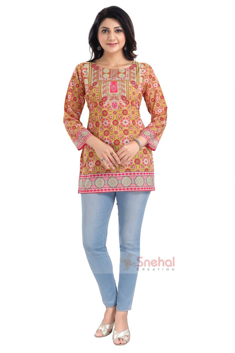 Yellow Faux Crepe Short Kurti Tunic Top